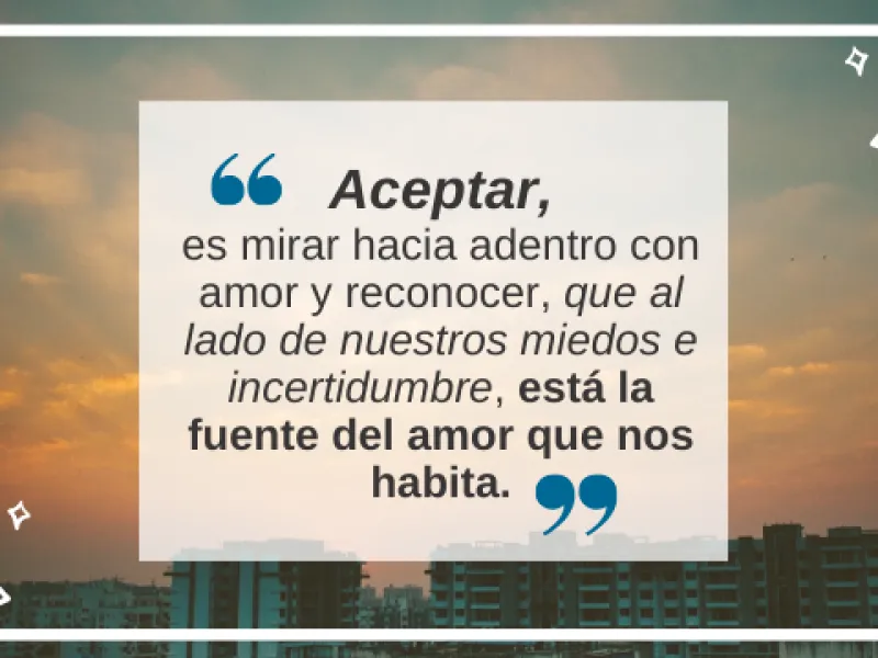Hoy se hace imposible escapar de nosotros mismos, estamos llamados a vernos a los ojos cada día, a reconocer cuánto hemos vivido y cómo lo hemos hecho. Para aceptar, hay que recorrer el camino del reconocimiento: “solo se ama lo que se conoce”o “el amor es proporcional al conocimiento”, diría un conocido jesuita amigo nuestro.Aceptar, es mirar hacia adentro con amor y reconocer, que al lado de nuestros miedos e incertidumbre está la fuente del amor que nos habita.