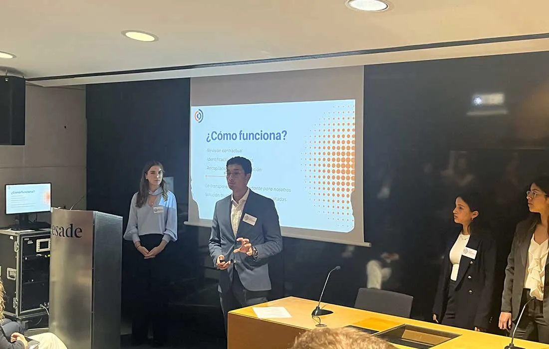 Sebastián, quien está realizando su Semestre Académico Internacional en España, presentó una plataforma que permite integrar y gestionar contratos de adhesión, en los que las partes no tienen la posibilidad de cambiar las cláusulas. La plataforma permite a las personas dar su consentimiento para que la misma maneje todas sus suscripciones y se le informe sobre el uso y optimización de las mismas. ”Si una persona no está optimizando una suscripción, la app genera un informe para que la persona decida si quiere eliminar su suscripción. La app también ofrece alternativas para que la persona pueda suscribirse a otro contrato con otra entidad prestadora de servicios”, explica el estudiante.